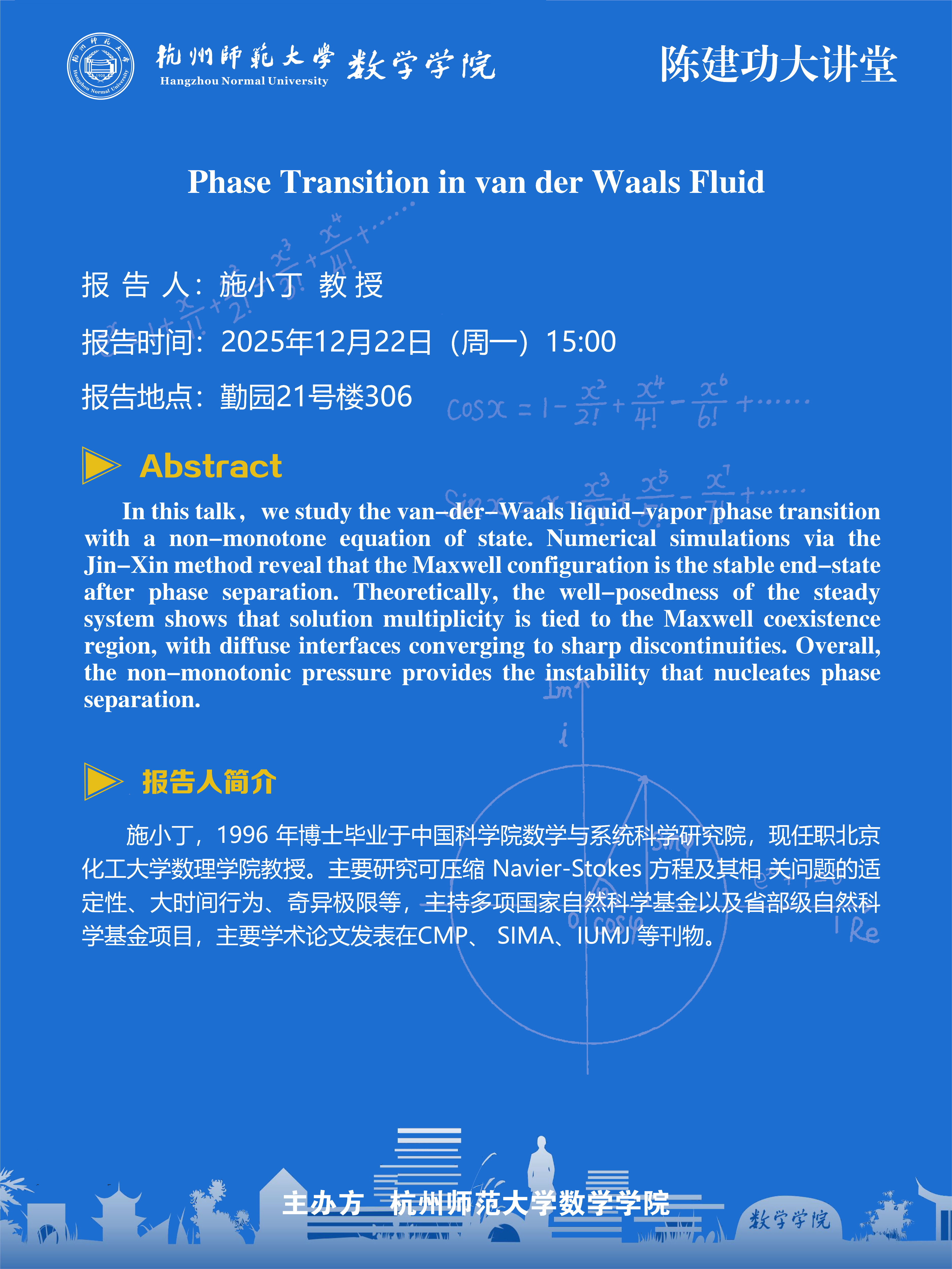 色花堂 大讲堂(2025-158):Phase Transition in van der Waals Fluid