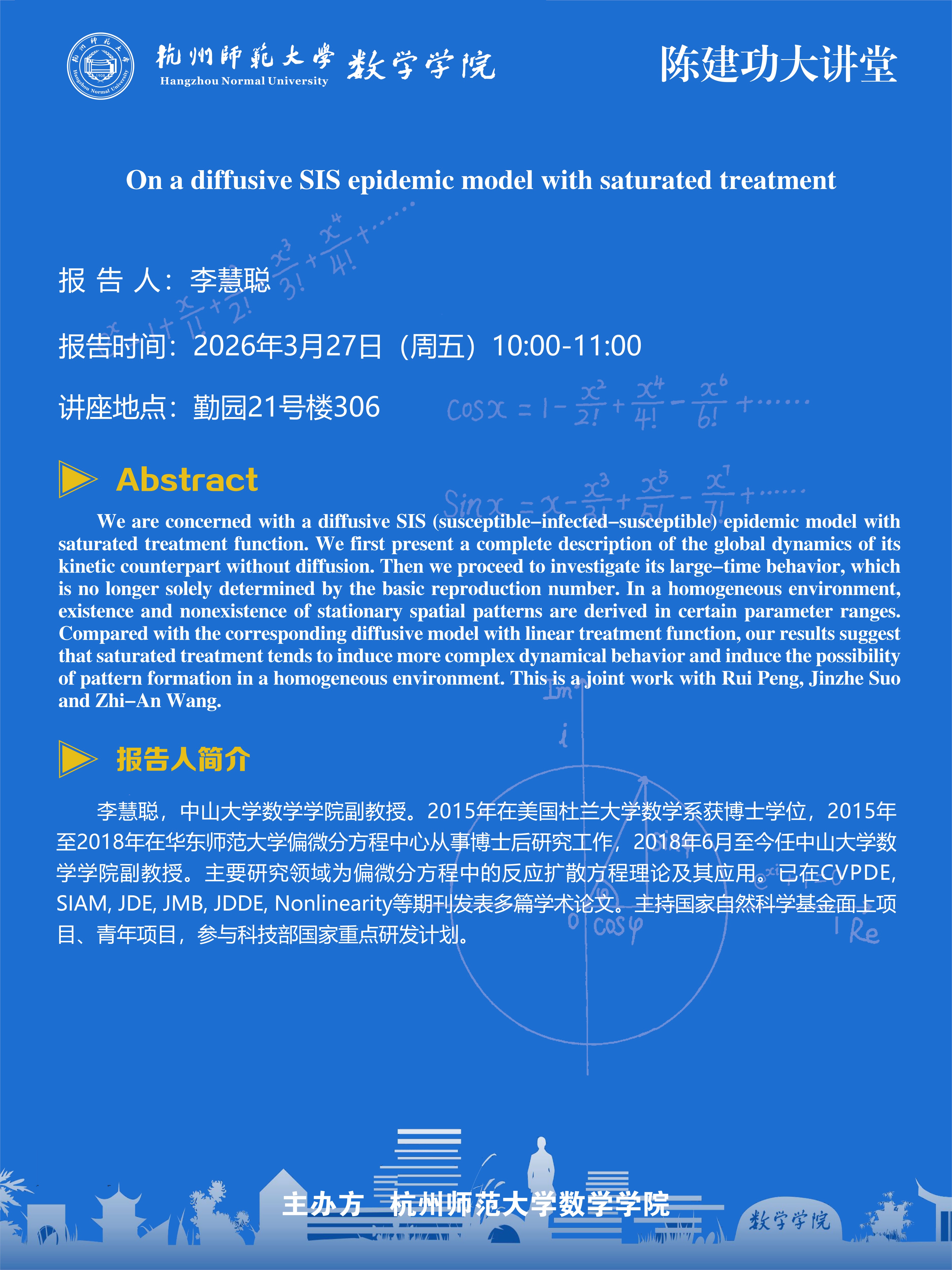 色花堂 大讲堂(2026-10):On a diffusive SIS epidemic model with saturated treatment